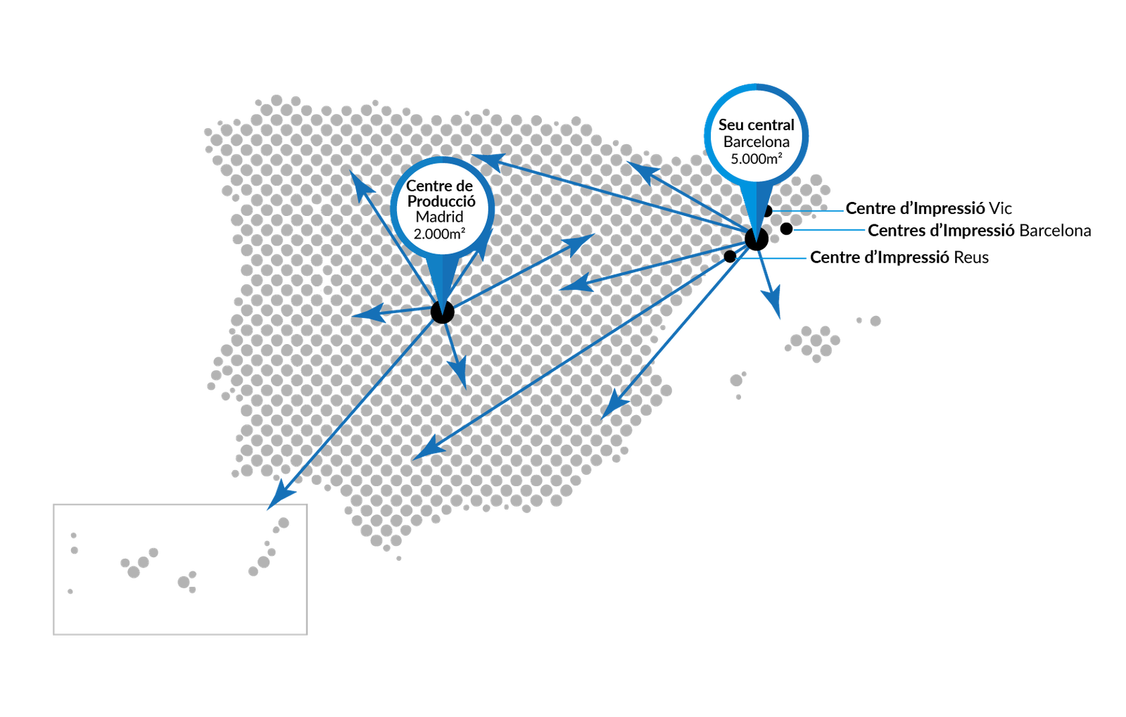 Si gestiones grans volums d’impressió, en diferents materials i mides, i necessites distribuir-los en diversos punts, ET PODEM AJUDAR.